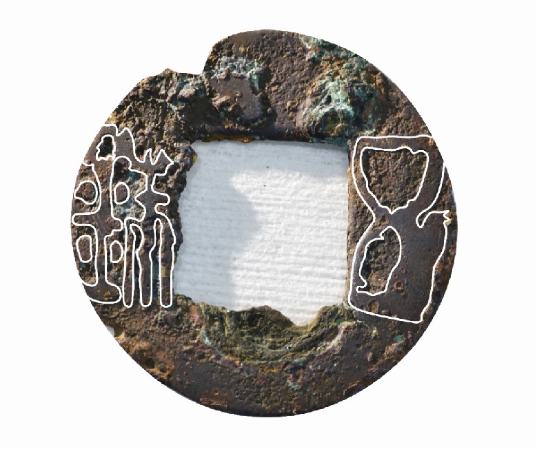 其中,最令人惊喜的发现是一枚来自中国的五铢铜钱,经过保护处理后,钱币上“五铢”两字清晰可辨。这也是此次发现的最直接的古代东西方贸易交流的证据。更特别的是,这枚铜钱是墓主人佩戴的装饰品,已经超越了货币流通的价值,生动展现了中华文化在中亚的传播与影响。