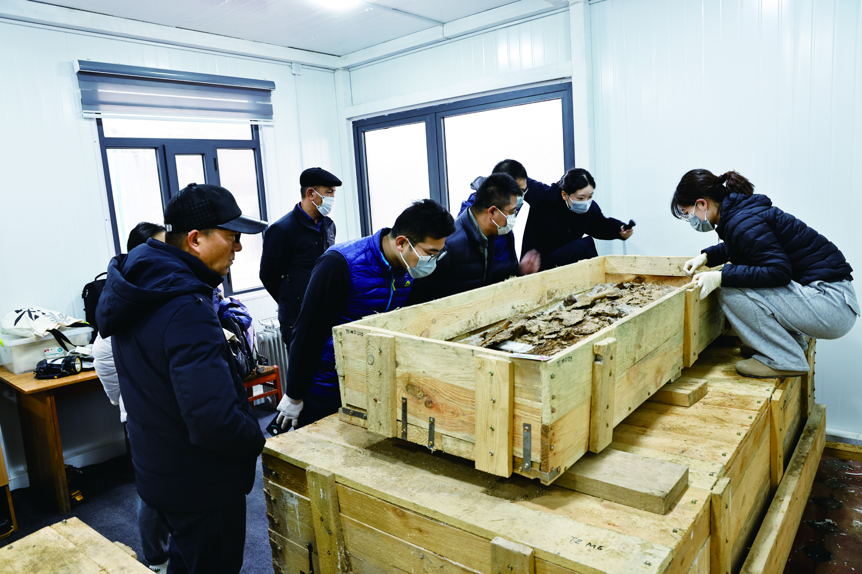 在此情况下,考古人员把探索出的精细化考古与现场文物保护协同工作的模式完整应用到中亚考古现场,联合考古队中方队员采用整体套箱技术,将这些脆弱遗存完整封装,这套在国内经过无数次实践验证的“黑科技”,既最大程度地减少移动对文物的损害,又为后续的精细化研究保留了原始堆积信息,真正实践了“发掘即保护”的学术理念。